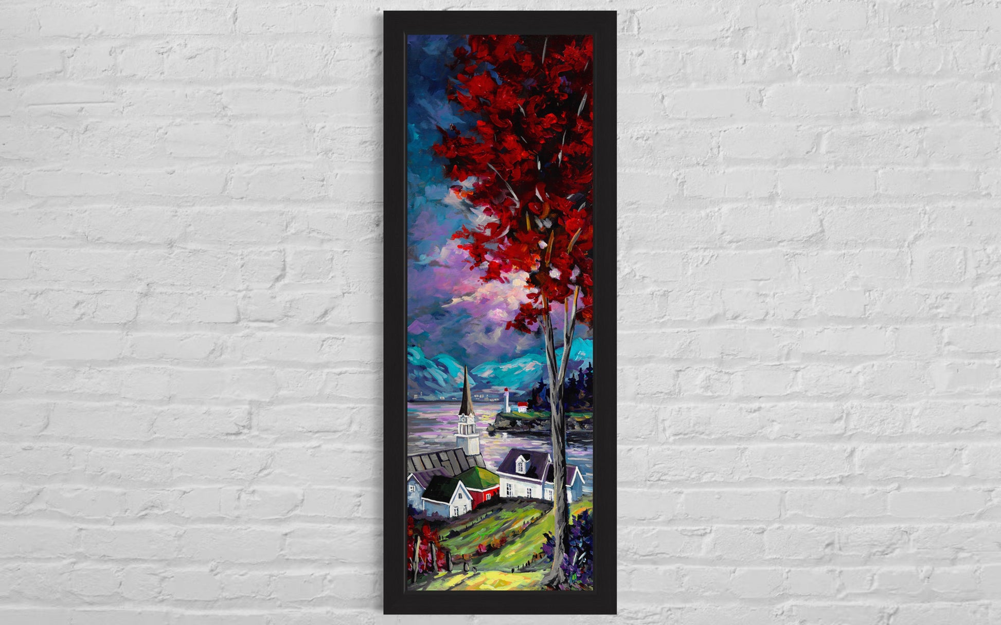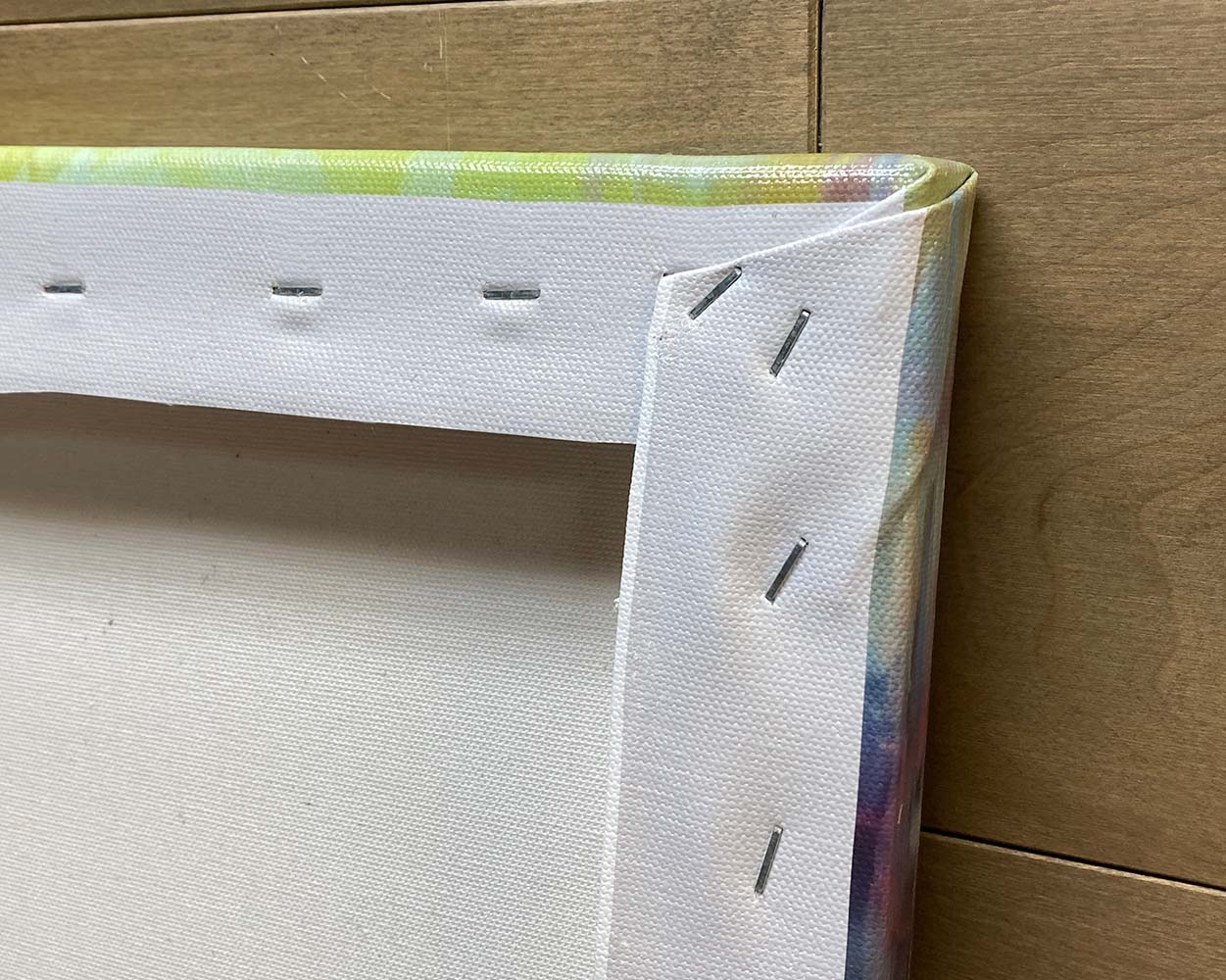Montée sur faux-cadre en bois de 1 pouce d'épais.